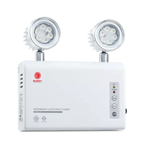 โคมไฟฟ้าแสงสว่างฉุกเฉินรุ่น SN ใช้หลอด LED ชนิด MR16 6 โวลท์ จำนวน 2 หัวโคมในการให้แสงสว่างฉุกเฉิน โคมไฟฟ้าแสงสว่างฉุกเฉินจะทำงานโดยอัตโนมัติ ทั้งในกรณีไฟฟ้าขัดข้อง และไฟฟ้ากลับสู่สภาวะปกติมีระบบการประจุไฟฟ้าที่ช่วยยืดอายุการใช้งานของ แบตเตอรี่ ตัวกล่องทำจากพลาสติก ABS ที่มีความสามารถทนต่อความร้อนสูง