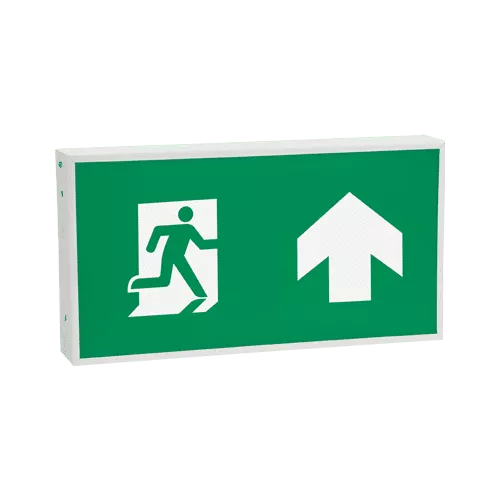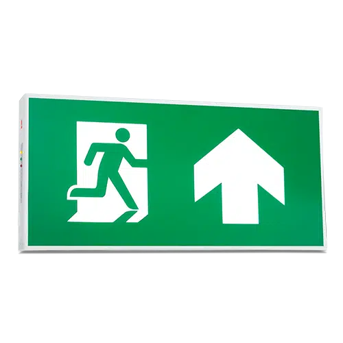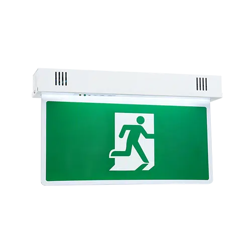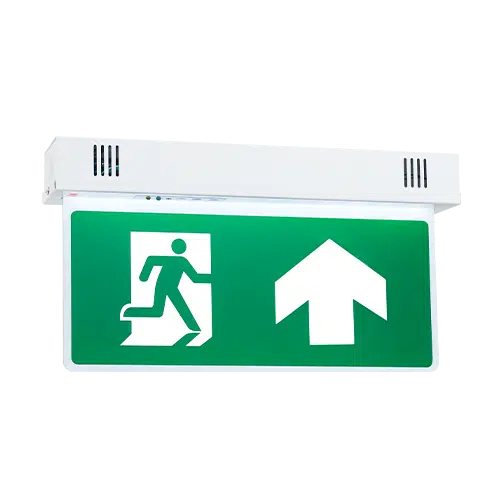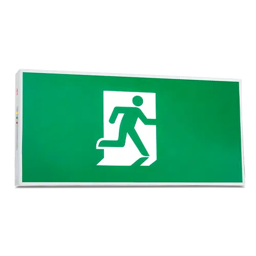 โคมไฟฟ้าป้ายทางออกฉุกเฉิน หรือป้ายทางหนีไฟ ใช้หลอดไฟ LED ทั้งประเภทติดตั้งเพดานและผนัง