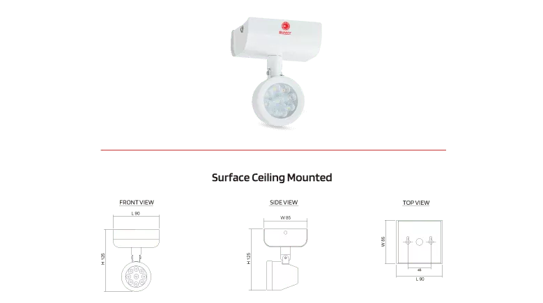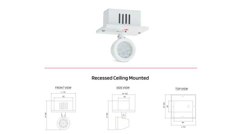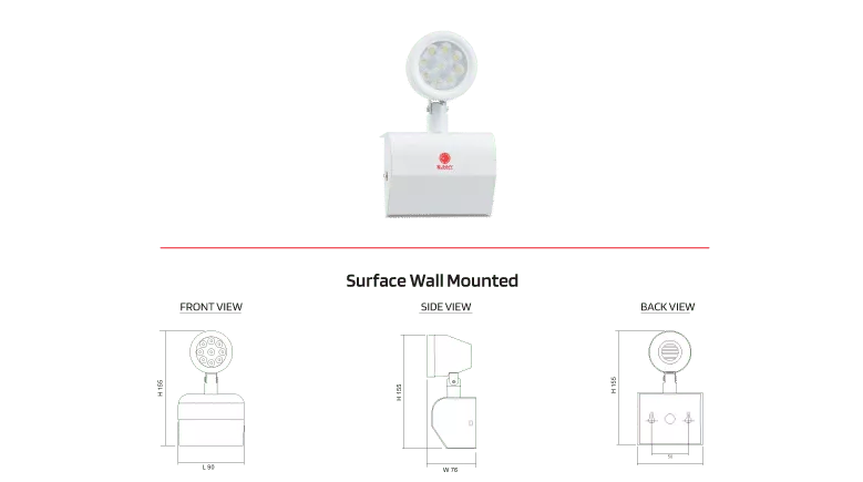ไฟฉุกเฉิน Remote Lamp ชนิดติดตั้งแบบ ฝังฝ้า/ติดลอย/ติดผนัง รุ่น RCD Series – Single Lamp ตัวโคมสามารถปรับทิศทางของลำแสงได้ทั้งแบบซ้าย, ขวา และมุมเงย โดยทางซ้าย, ขวา สามารถปรับได้ประมาณ 180 องศา 45 องศา ของมุมก้มเงยในลักษณะการติดตั้งใช้งานจริง การใช้งานทำงานร่วมกับหลอด LED MR16 Gu5.3 โดยรับพลังงานไฟฟ้าจากตู้ควบคุมระบบไฟฉุกเฉิน Central Battery Systems กรณีไฟฟ้าดับจะให้แสงสว่างฉุกเฉินเพื่อการหนีภัย